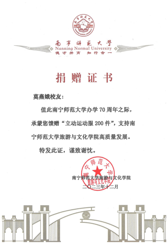 学院全体师生对莫燕娥校友回馈母校的爱心之举表示衷心的感谢。校友今天的捐赠不仅仅是物质上的捐赠,更体现了精神的传承,为青年学子树立了良好榜样。希望旅文学子将这份回馈母校、回馈社会的责任心薪火相传。