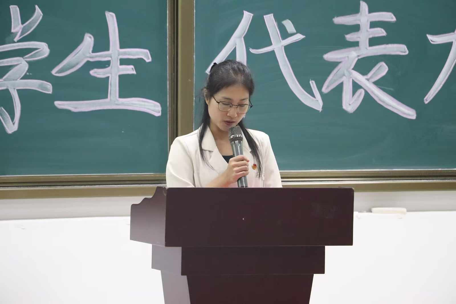 党委副书记黄珍为大会致贺词。她指出了会议的重要意义,向学院学生会一年来为服务同学、服务学院教学科研等各工作的辛勤付出表示肯定。并对同学们提出几点希望:一是要树立远大理想,树立对马克思主义的信仰、对中国特色社会主义的信念、对中华民族伟大复兴中国梦的信心,到新时代新天地中去,让青春在创新创造中闪光;二是要珍惜机会、踊跃参与勤实践,奋发有为担重任,展现才华横溢、风华正茂的新风貌;三是要热爱伟大祖国,听党话、跟党走,胸怀忧国忧民之心、爱国爱民之情,以一生的真情投入、一辈子的顽强奋斗来体现爱国主义情怀,让爱国主义的伟大旗帜始终在心中高高飘扬。校学生会代表吕孟娴向大会致辞,为大会带来了校学生会的殷切期望和美好祝愿。