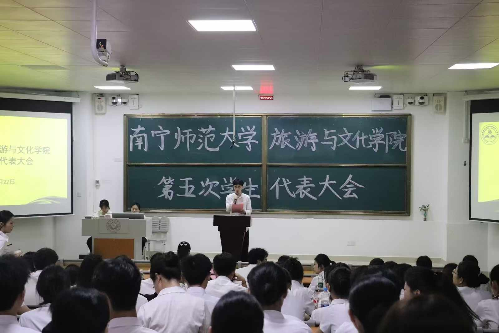 团委书记莫秋桂,校学生会代表吕孟娴以及来自各班的学生代表参加此次会议。