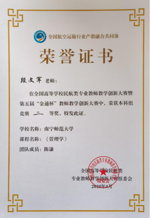 段文军、陈谦老师团队荣获本科组二等奖。