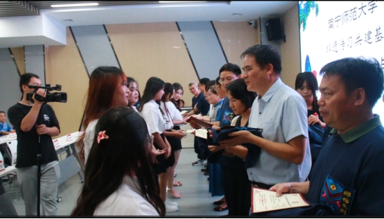 与会领导给非遗传承人颁发校外传授教师聘书