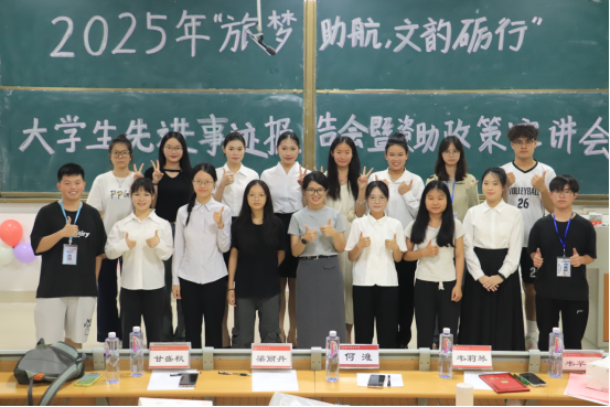 于武鸣校区武2-109举办 2025 年 “旅梦助航,文韵砺行” 大学生先进事迹报告会暨资助政策宣讲会。学院资助工作负责老师何滩、团委学生会主要负责人及 2024-2025 学年受资助在校生共计 200 余人参与活动。