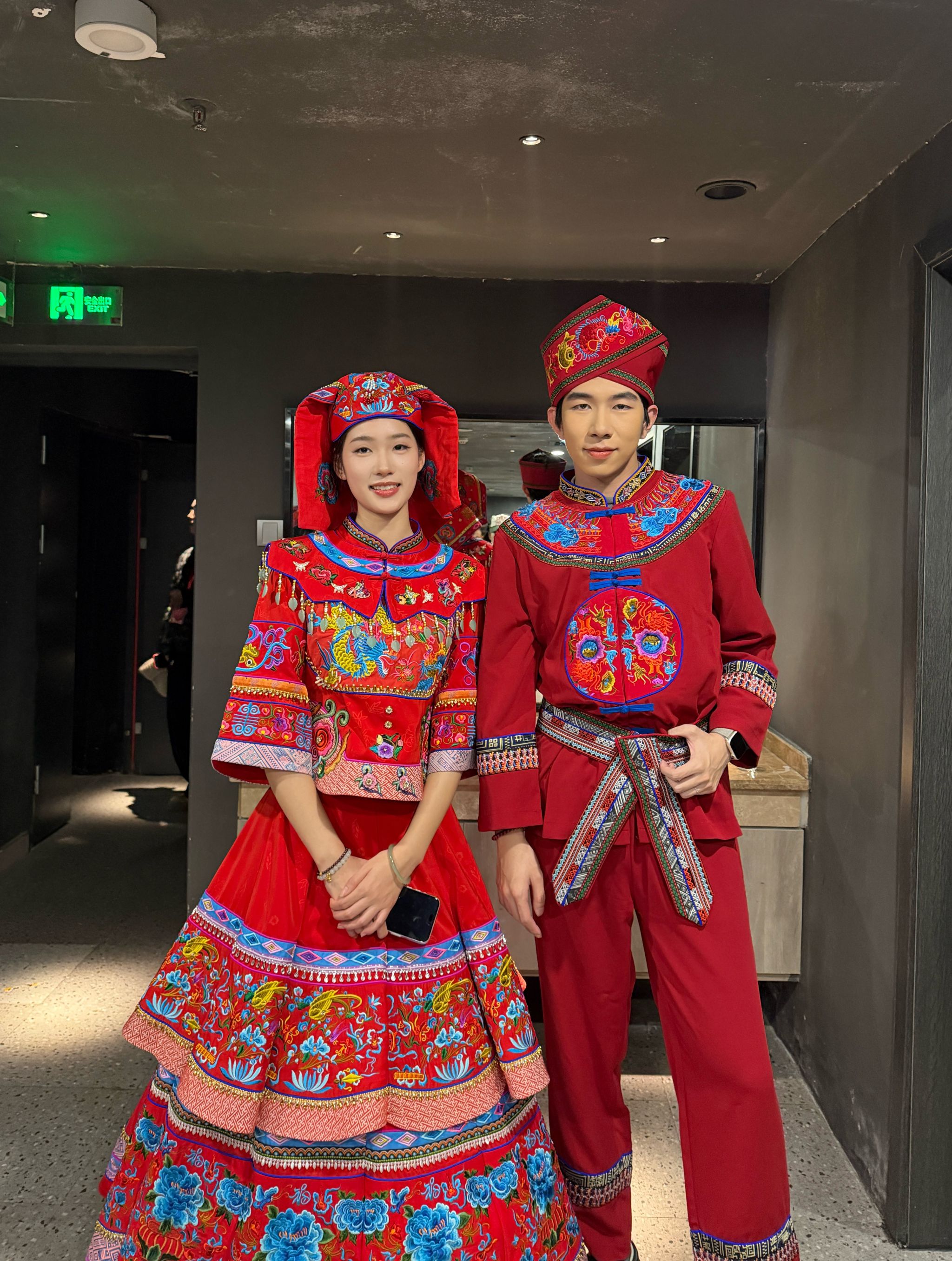 2023级航空服务艺术与管理专业学生丁硕、胡佳佳受邀参加了2026年春节戏曲晚会,与南宁市具代表性的壮族传统服饰及彩绣工艺非遗传承人陆兰珍女士联袂登台,共同演绎壮锦非遗文化。