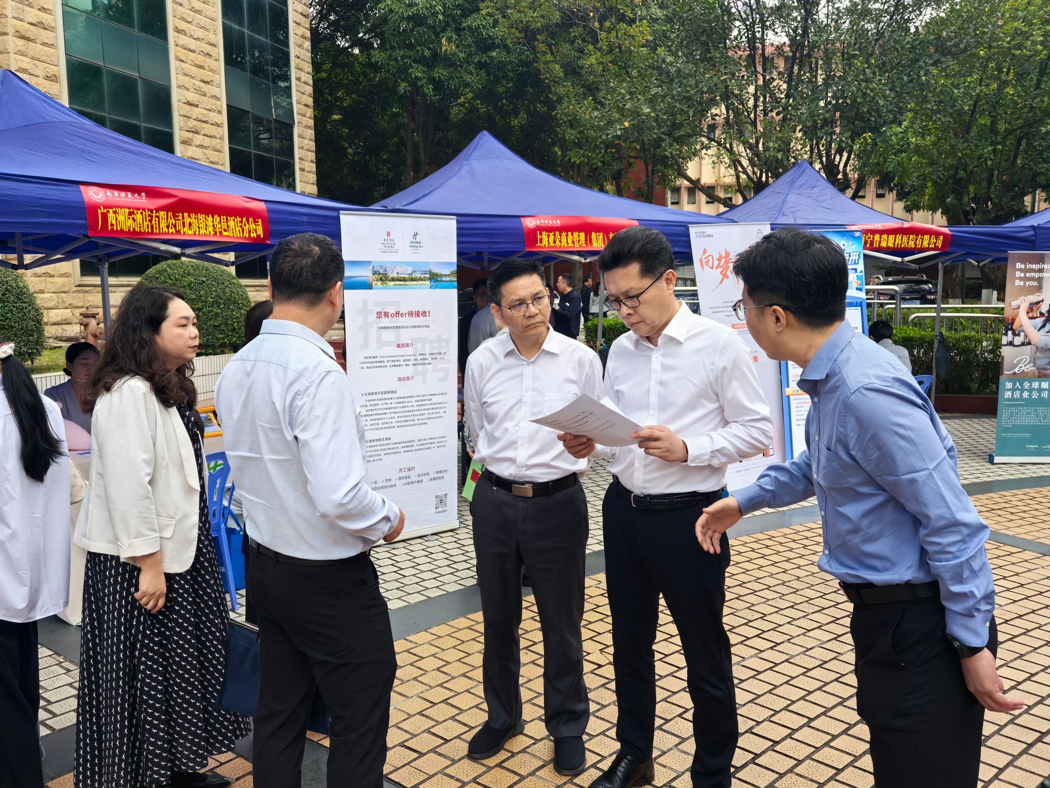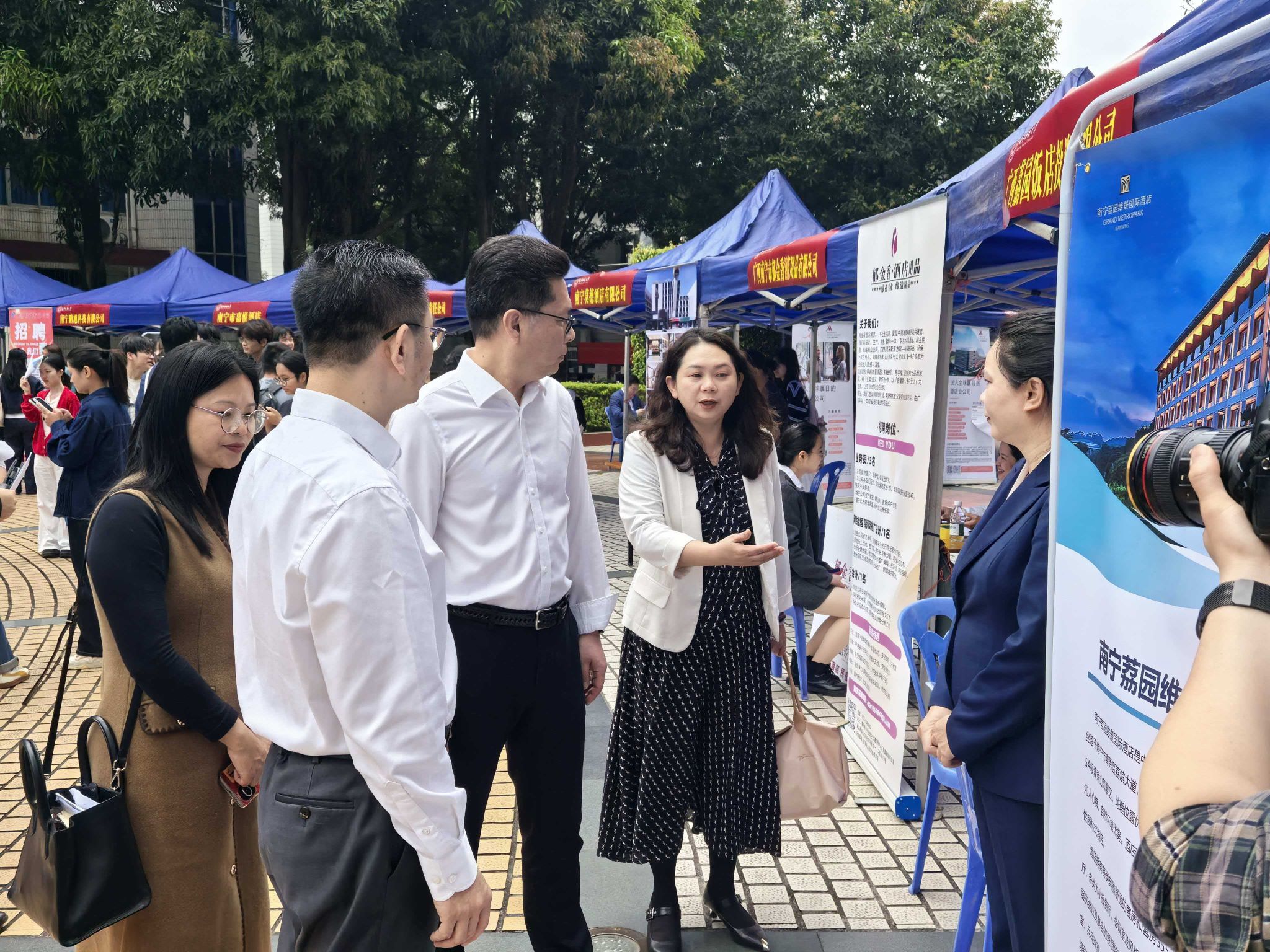 “马聘前程・才聚文旅”2026届毕业生旅游专场双选招聘会在明秀校区文星楼一楼广场举行,学院100余名未就业毕业生及200余名2027届毕业生参加招聘会。学校党委书记张鹏、校长隆广庆等校领导亲临现场指导工作。