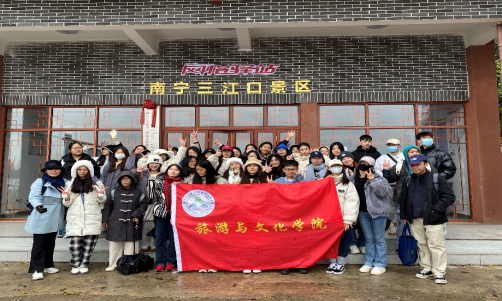 同江村乡村旅游的运营方,南宁三江源文化旅游投资有限公司董事长咸立南对师生的到来表示热烈欢迎。当天,同学们首先参观了老口航运枢纽,深入了解到老口航运枢纽的建成所发挥的航运、防洪、发电以及改善南宁水环境四大功能的重要意义,并以此为起点开始本次的邕江溯源之旅。接着来到同江村三江汇流处的“邕有天下,左右逢源”石碑处合影留念。随后,同学们乘坐渡轮抵达三江口景区。运营部陆经理带领同学们参观了明清古建筑群、宏图园立地书橱、江边露营地、邕江“零起点”等景点,同学们对已经投入使用的设施和开展的活动项目有了较为全面的了解,随后咸立南董事长带领师生来到了正在建设的民宿区,在翠竹掩映的湖畔描绘了田园民宿的规划蓝图,并诚挚的邀请同学们在明年民宿建成后来这里担任民宿管家。
