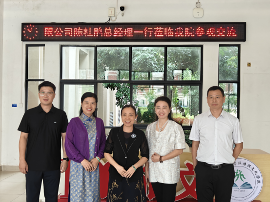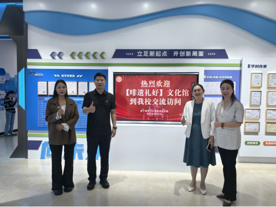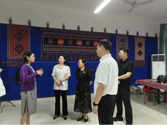 考察交流。学校副校长龙妮娜热情接待来访客人,双方围绕非遗传承、文创开发及产学研合作等议题展开深入洽谈。