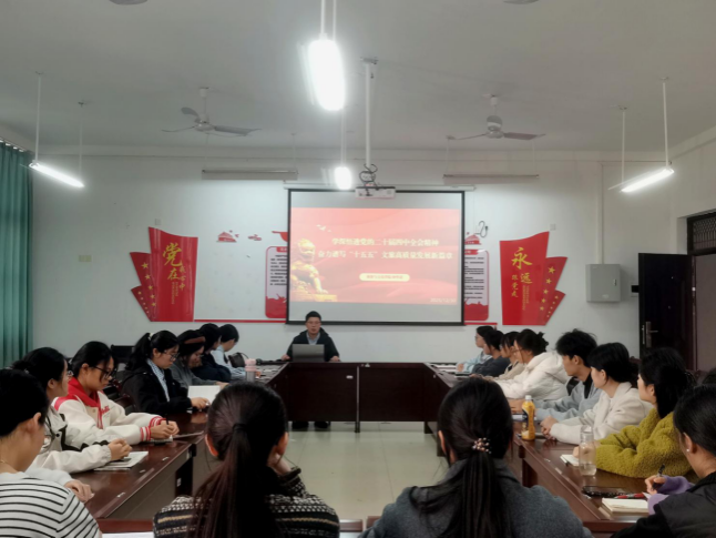 副院长钟学进以“学深悟透党的二十届四中全会精神奋力谱写‘十五五’文旅高质量发展新篇章”为主题,面向学生第二党支部讲授专题党课,支部全体党员参与了此次学习。