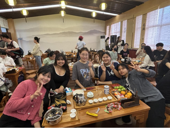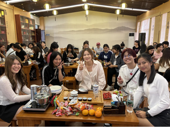活动开始之前,双方主持人介绍了本次活动意义和目的,希望通过此次活动增进中泰学生之间的了解与友谊,促进两国文化的交流与融合。首先,中国学生与国际教育学院的泰国留学生们一起在悠扬的古琴声中,一边品名一边欣赏茶艺社成员带来的独具中国传统文化魅力的茶艺表演,在表演中感受中国历史悠久的茶道文化。通过亲身体验茶艺冲泡,感受茶香与文化的美妙融合。最后,中国学生与泰国留学生们围绕着中泰饮食文化、旅游资源等积极互动与交流,一起在做小游戏、唱中国歌曲、泰国歌曲中拉近了中泰学生之间的亲近感,还建立了深厚的友谊。