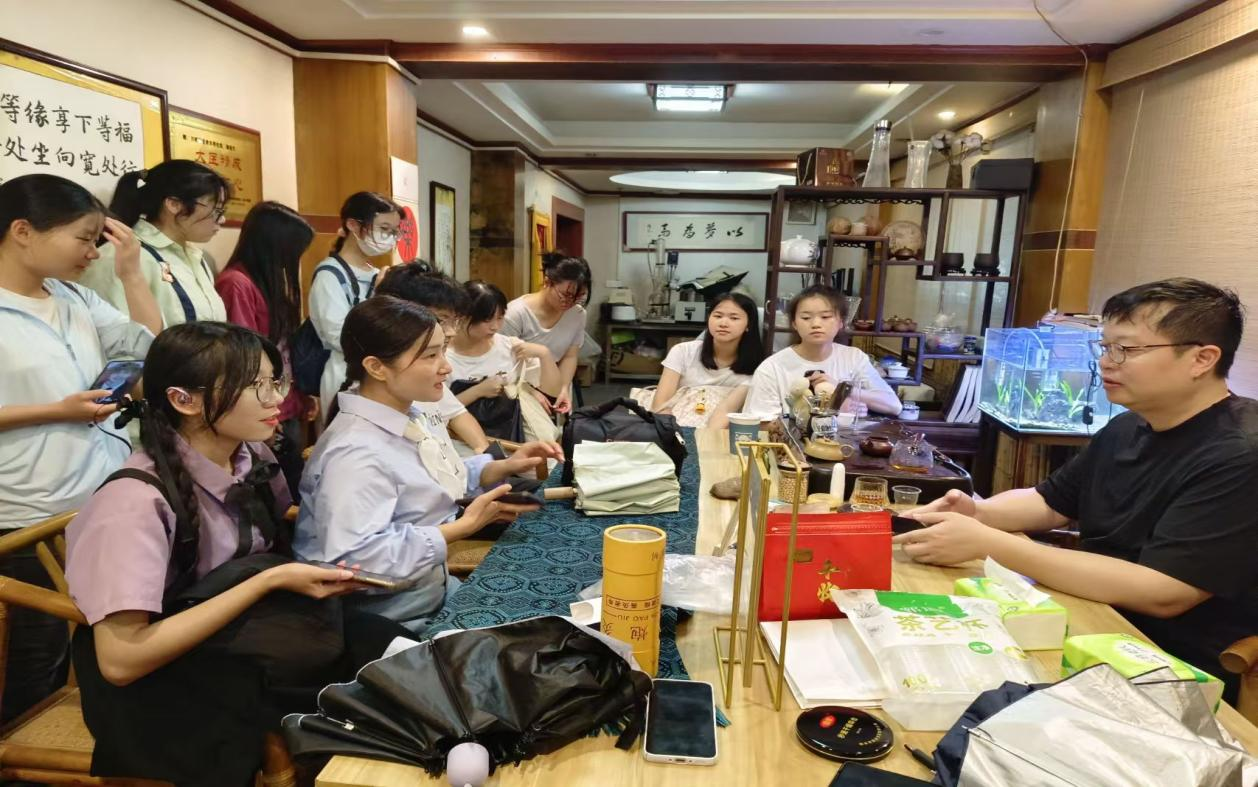 “壮医艾灸的根,扎在壮族人‘天人共生’的骨子里。” 刚走进万明堂,传承人腾医生的话便勾起了同学们的好奇。在陈列着老药碾、古灸具的展示区,他娓娓道来自己与壮医艾灸的缘分,四十余年的坚守里,藏着太多与“坚持”相关的故事。他说到:“支撑我走下去的,从来不是金钱,而是患者康复后那句‘谢谢你’”。腾医生指着墙上挂满的锦旗——“妙手回春医仁心”“华佗再世送子观音”,每一面都记录着一段医患故事。他说,不同阶段总有陌生人的认可化作动力,让这缕药香得以在时光里延续。同学们望着那些泛黄的老物件与崭新的锦旗,忽然读懂:非遗传承从来不是孤勇者的征程,而是一场双向奔赴的温暖接力。