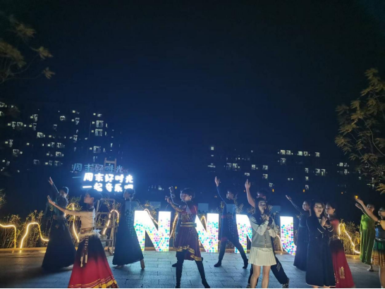 现场,旅文学子带来的《This Is For》以流畅动作彰显青春张力,《Soy Yo》则用活泼编舞与明快旋律,将少年意气诠释得淋漓尽致。歌曲环节,学院学子献唱的《不要忘记我爱你》情感真挚,《手写的从前》温柔缱绻,《我的美丽》诗意盎然,《爱上你对于爱上寂寞》深情动人,引发观众强烈共鸣。压轴的歌伴舞《我爱你中国》中,学院学子以嘹亮歌声与优美舞姿,将活动推向高潮,用赤子之心诠释家国情怀,赢得全场掌声。