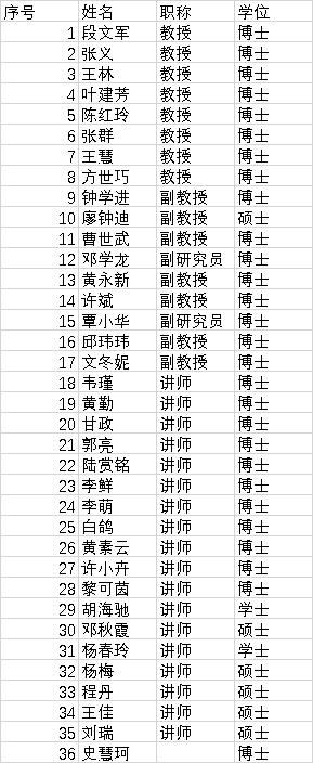 学院现有专任教师36人,其中教授8人、副教授9人、博士28人;博士生导师3人,硕士生导师23人(含外聘导师8人);双师型教师15人;8人次入选省部级人才称号及培养计划。