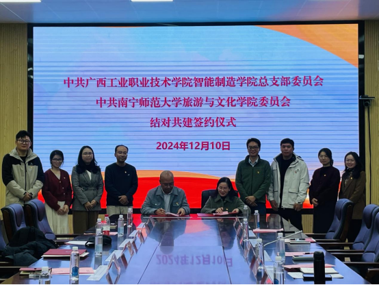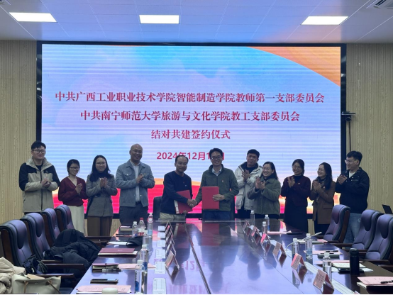 交流会后,装备智造学院党总支梁艳娟书记和学院党委组织员姜宁分别代表所在学院党组织签署结对共建协议书;装备智造学院副院长、教师第一党支部书记吴坚和学院教工支部书记甘政博士代表所在党支部签署结对共建协议书。结对双方将在持续抓好支部标准化、规范化建设的同时,充分发挥“新时代全国高校党建工作样板支部”和广西高校“双带头人”教师党支部书记“强国行”专项行动团队的示范带头作用,促进提高结对共建工作水平,推动提升结对共建质量,增强基层党组织活力和成效,进一步增强影响力与号召力,使全国样板党支部的辐射作用持续增强。