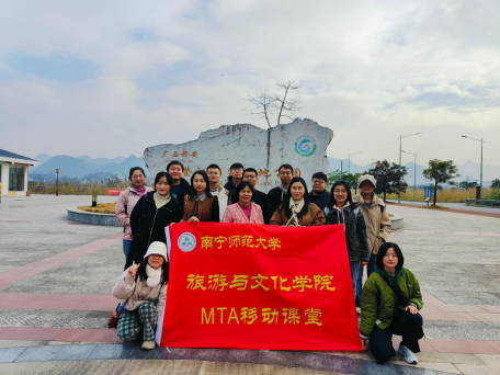 旅游管理(MTA)专业研究生团队,在王林教授《民族文化遗产旅游开发与保护》课程的实践教学环节中,前往广西都安瑶族自治县澄江河湿地公园开展实地调研。